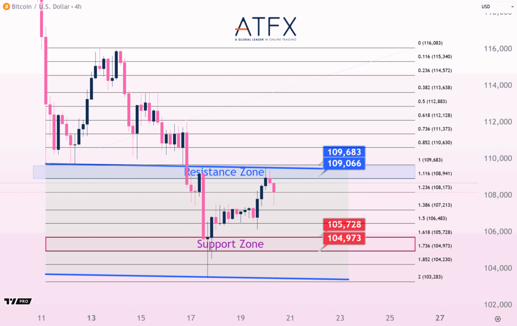 Gold retreated nearly 2% to around $4,250 after peaking at a record $4,379. The pullback was driven by a stronger dollar and Trump’s softer tariff stance, though expectations for Fed rate cuts continue to provide underlying support. Technically, $4,215 remains key demand, while resistance is at $4,332. A rebound toward $4,300+ is favored if support is held.