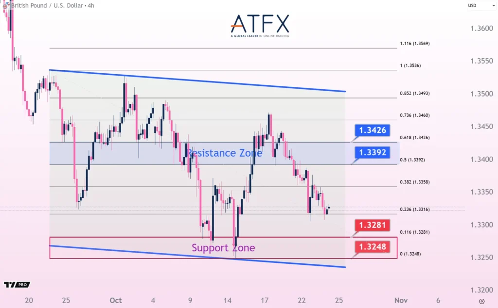 The pair extended its five-day decline, holding just above 1.3300 as traders await UK Retail Sales (-0.2% MoM expected) and U.S. CPI. Technically, support at 1.3281 is key, while a rebound could target 1.3392 if sentiment improves.