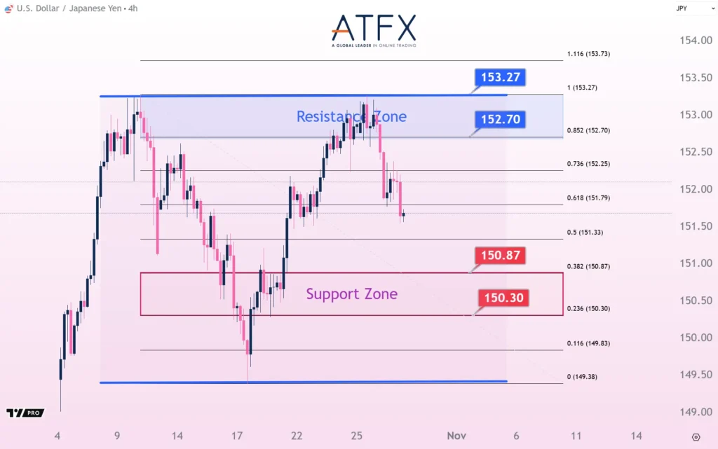 USD/JPY eased to 151.81 after Japanese officials stressed fiscal discipline and U.S. Treasury backed conventional tools. BoJ is set to hold rates, with markets eyeing hints on future hikes. Technically, support at 150.87 may trigger a rebound toward 152.70.