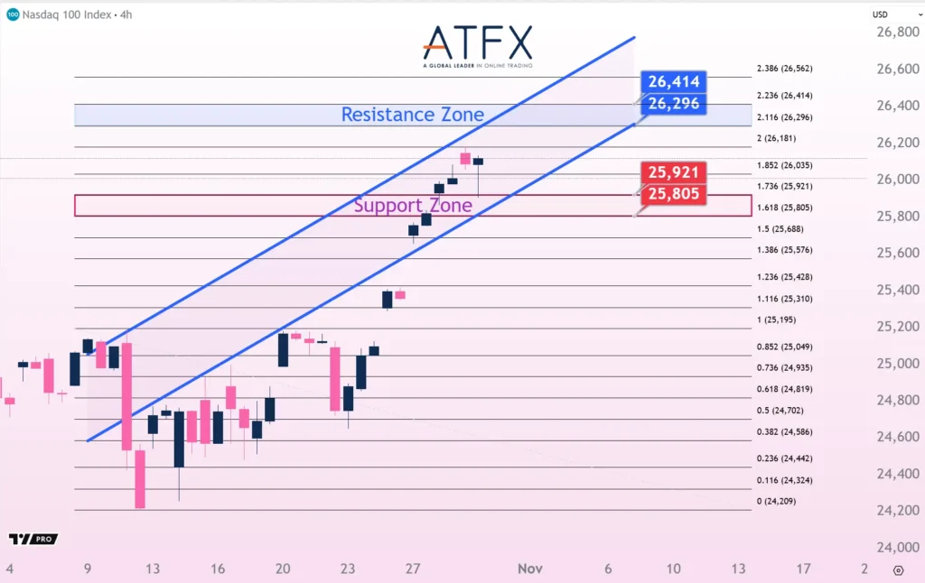 The Bank of Japan will announce its rate decision today. The election of Sanae Takaichi as Prime Minister has added new uncertainty to the BOJ’s monetary policy outlook. Governor Kazuo Ueda has recently shown greater caution about raising rates, leaving markets to delay expectations of further tightening. Traders will closely monitor the BOJ’s latest rhetoric. Later tonight, attention shifts to the European Central Bank decision, where rates are expected to remain unchanged for the third straight time. Most analysts believe the ECB has ended its rate-cutting cycle. Still, President Christine Lagarde’s comments will be critical for shaping the policy roadmap ahead, influencing both the euro and European equities.