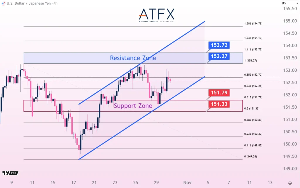 USD/JPY touched 152.86 after the Fed, with the dollar in momentum. The pair is consolidating above 151.79 support, and buyers are testing the 153.00 barrier. A firm breakout could open the path toward 153.27, while repeated rejections may trigger a pullback.