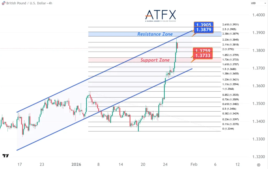 Nasdaq reached its highest level since late October, amid a focus on earnings reports and US policy decisions. If the NAS100 extends its five-day winning streak, it could target the key resistance level of 26,288, the previous high.