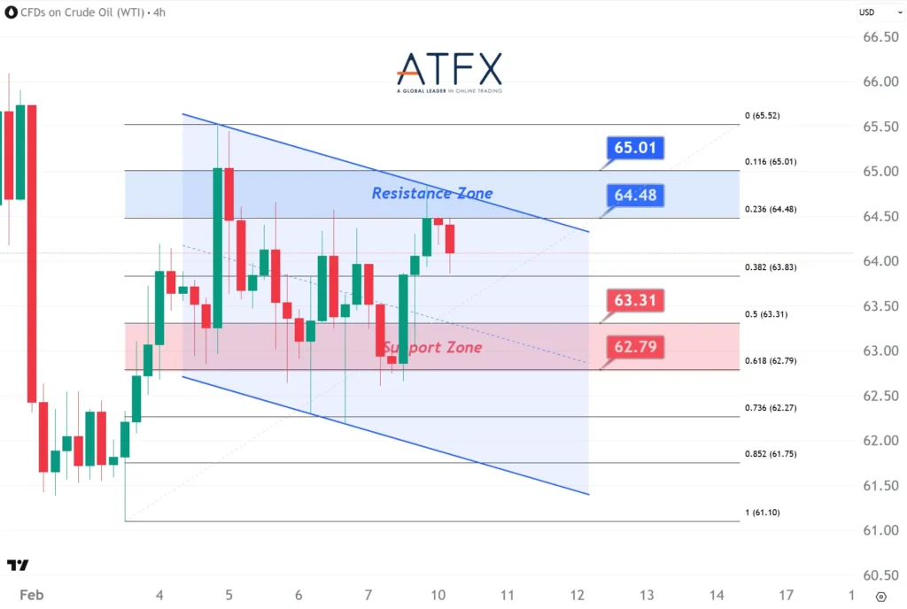 WTI firmed as Middle East tensions eased, lifting risk premiums, with shipping risks near the Hormuz Strait keeping traders cautious. Prices struggled to extend gains beyond the $64.48–65.01 range, while dip demand emerged around $62.79–63.31. Near-term action looks range-bound and increasingly headline-driven rather than purely fundamental.