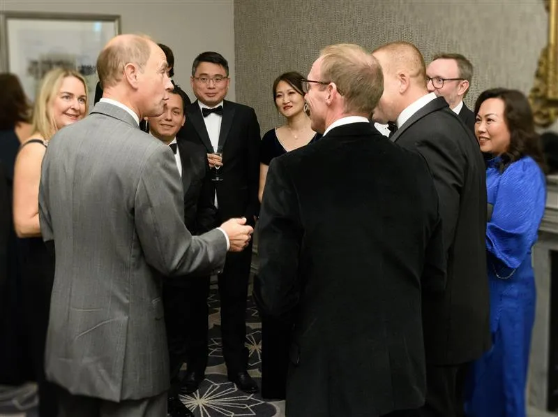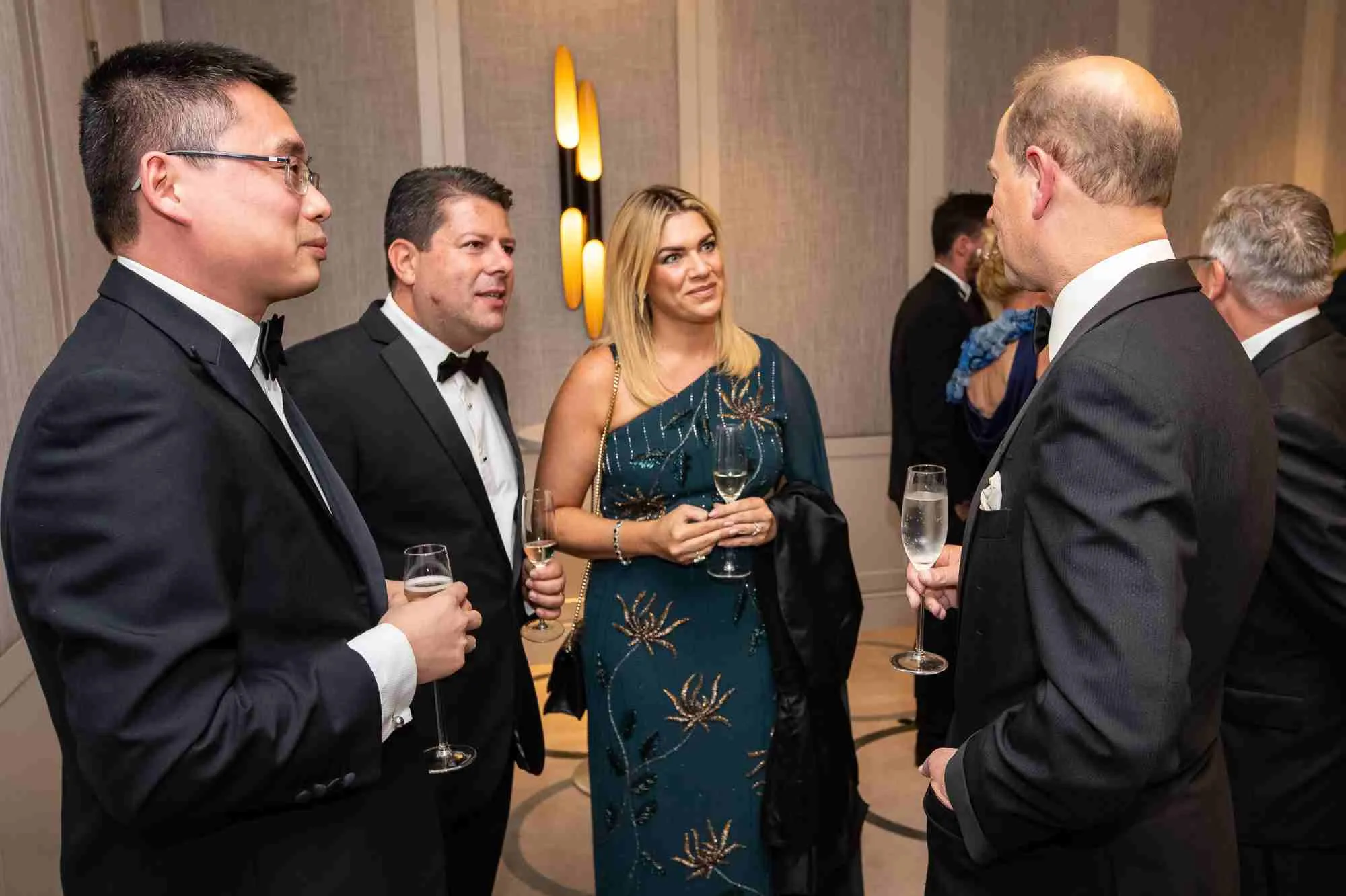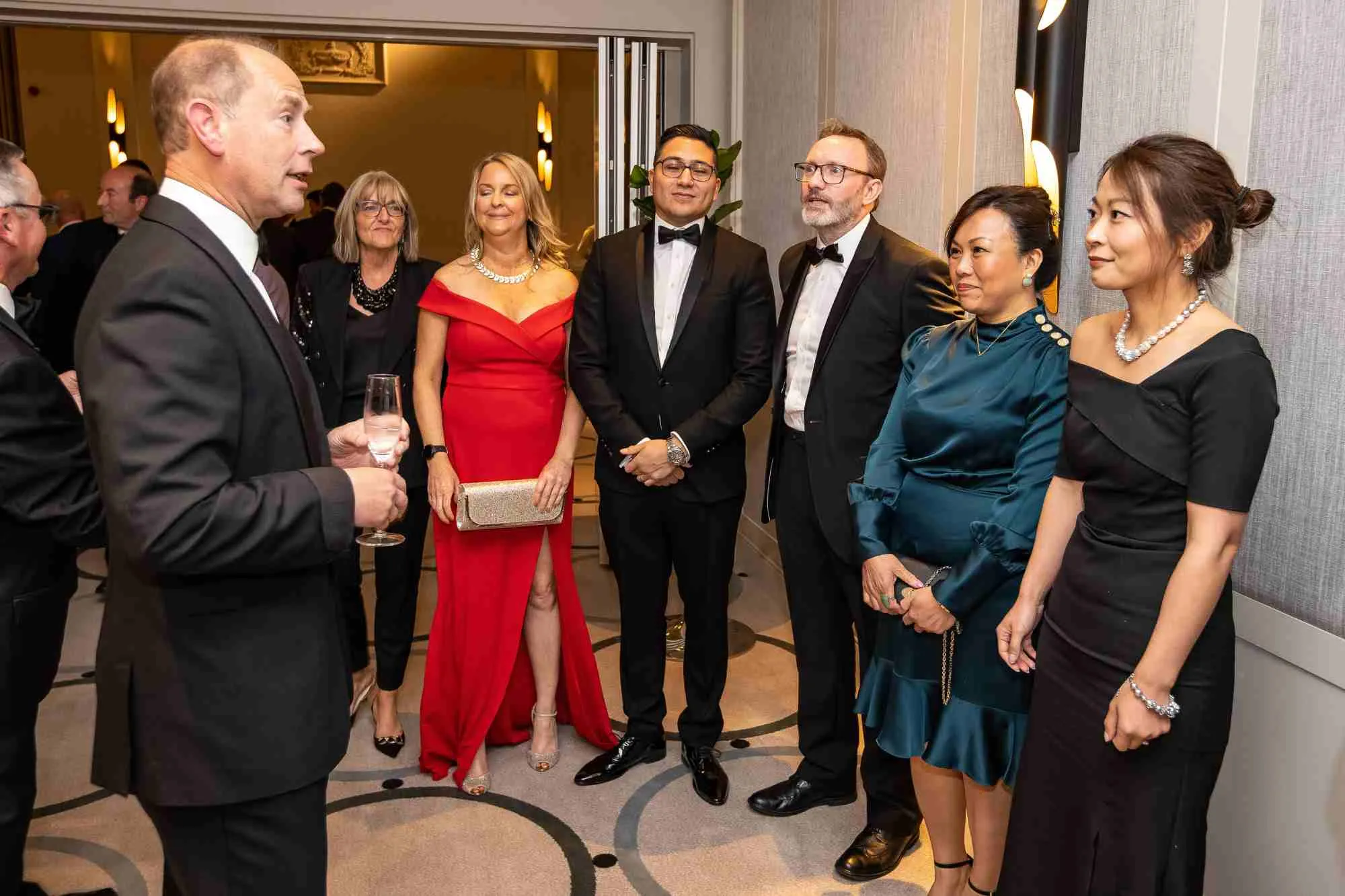[बाएं से दाएं] वेम्स चान (ATFX ग्लोबल हेड ऑफ मार्केटिंग एंड ब्रांडिंग), वेई क़ियांग झांग (मैनेजिंग डायरेक्टर, ATFX UK), एर्गिन एर्डेमिर (मार्केटिंग डायरेक्टर, ATFX UK), प्रिंस एडवर्ड, अर्ल ऑफ वेसेक्स, और फॉरफ़र हिज रॉयल हाईनेस ने डिनर इवेंट में प्रमुख ATFX नेताओं से कुछ बातचीत की।