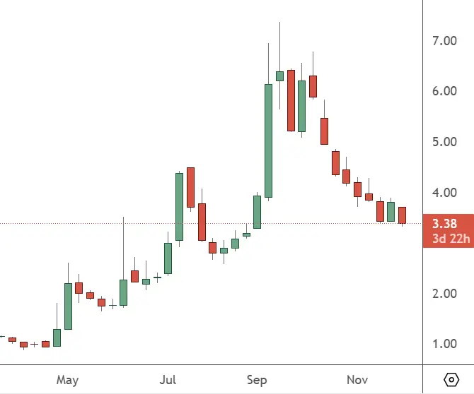 หุ้น Yunfeng Securities (HK:376) ร่วงลง 10% หลังประกาศข่าวนี้ ทำให้บริษัทที่เกี่ยวข้องกับคริปโตเคอร์เรนซีมีความเสี่ยง ถึงกระนั้น ราคาหุ้นก็ยังคงเพิ่มขึ้น 225% ในปีนี้ การชี้แจงจากจีนอาจทำให้ราคาหุ้นร่วงลงอีก