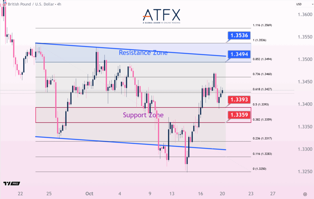 上周五美元反弹背景下,英镑受到财政担忧的拖累,因财政大臣已确认秋季预算案将包含旨在恢复财政稳定的新一轮增税措施。英镑兑美元上周五从逾一周高位回落,尾盘轻微收跌,得益于守住了主要均线的支撑,所以日内可能会再度尝试向1.3500关口靠近。