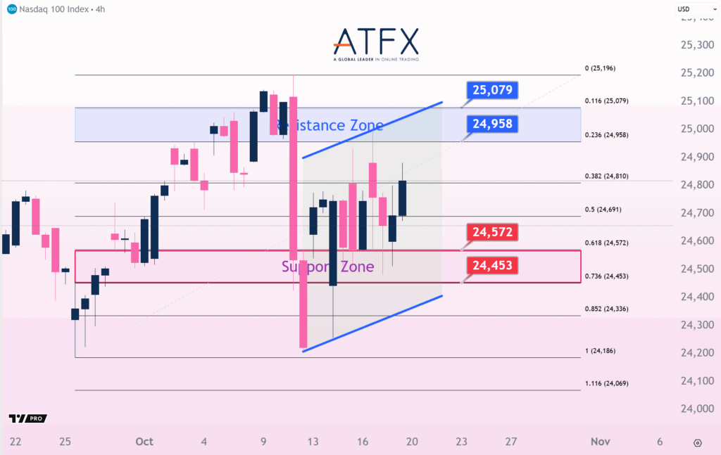 上周五大型科技股涨跌不一,特斯拉收涨2.46%领涨,苹果涨近2%,但甲骨文发布长期指引后跌近7%,纳指整体反弹偏向温和,不过技术上越过了日图主要均线,如果可以持稳其上方,将为进一步测试25000关口提供空间。