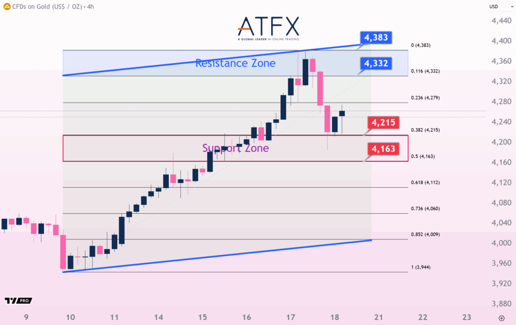 金价在触及每盎司4300美元以上的纪录高位后回落,盘中下挫逾2%,受美元走强和美国总统特朗普关税言论打压。现货金收跌1.8%,报每盎司4248.73美元,盘初一度触及历史高点4378美元。油价在上周五小幅上涨,但周线录得近3%的跌幅。