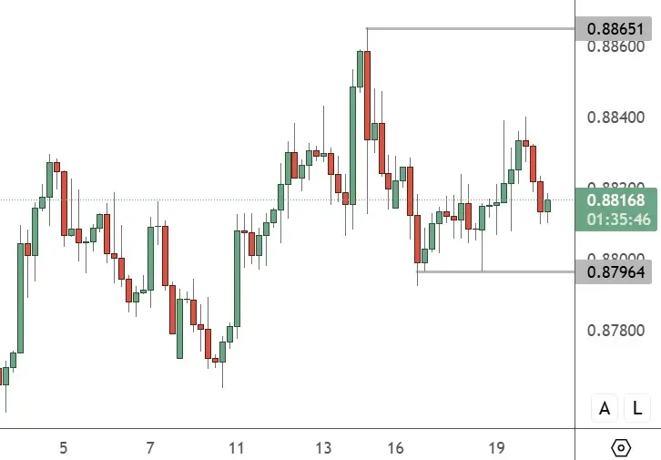 4H圖表上,歐元兌英鎊的支撐位在0.8800,阻力位在0.8865,可能透過測試來確定下一條路徑。